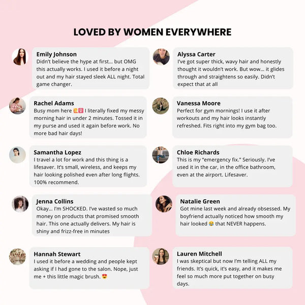 Midday flyaways, frizz and bad hair days? Silksweep Brush Tames chaos immediatley in seconds.Slips into your purse whenever you need it, 3 adjustable level for every hair type. From Soft & Fine to Thick & Wavy.